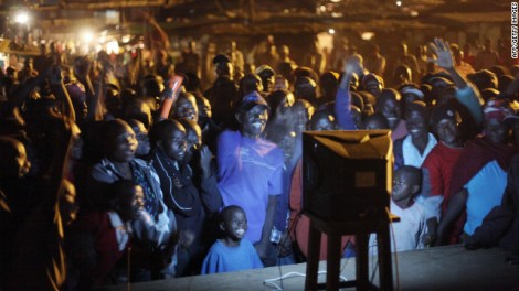 Residents of Kibera, Kenya’s biggest slum, gather to watch Obama’s swearing in ceremony. AFP/ Getty Images