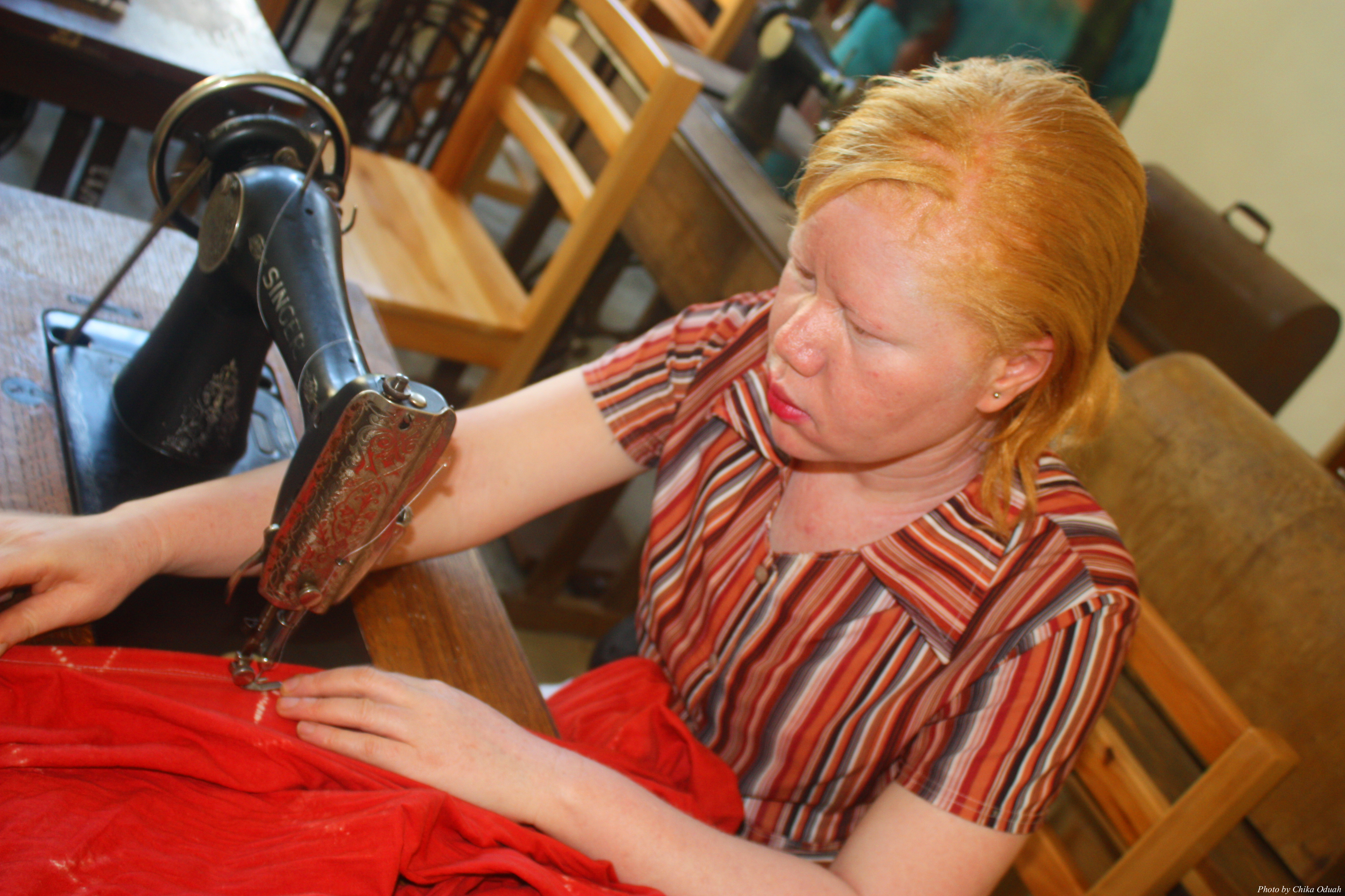 Judicka Lyamboko does not talk much but her body language says a lot. She’s a hardworking professional who is determined not to let the challenges of albinism hinder her. She dropped out of school when her eyesight deteriorated. “I could not see the board in the classroom,” she says. Now, she is a seamstress, the best one, according to an administrator at the Care Unit For Persons With Albinism in Moshi, Tanzania. She sews elaborate garments from bright printed fabrics. She is not married and says finding someone to love her has not been easy. She admits she does not know if she will ever find a man to love though she is still young, just 28 years old. She changes the topic. “Some of my colleagues were mutilated,” she says. Those colleagues were also albinos.