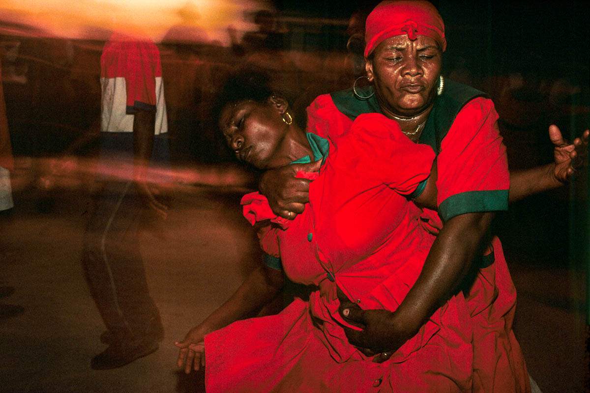 HAITI, CROIX-DES-BOUQUETS. Ceremony dedicated to St. John the Baptist. Two mambos (voodoo priestesses) are in a trance, possessed by the loas (spirits) in October 1995. Photo by Jean-Claude Coutausse