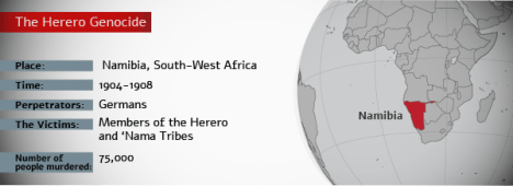The document, titled ” Genocide is Genocide “, called on the German government to accept “historical responsibility” for the genocide perpetrated against the Herero and Nama people over a century ago. On July 8, Norbert Lammert, a heavyweight of the Christian Democrat party, and president of the Bundestag, wrote a column in Die Zeit, stating that Germany perpetrated a “race war” and a “genocide” in Namibia. (Excerpt from Al Jazeera article: Forgotten genocide: Namibia’s quest for reparations by Hisham Aidi)