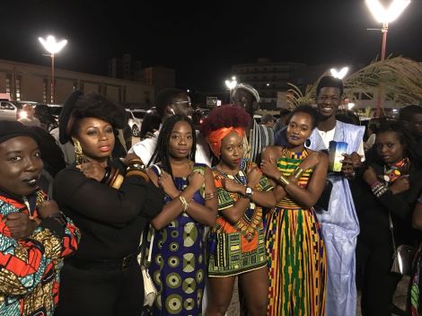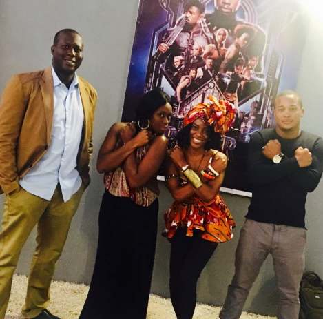 Ciku Kimeria (far right) and friends at a screening of Black Panther in Dakar, Senegal (Photo courtesy of Ciku Kimeria)
