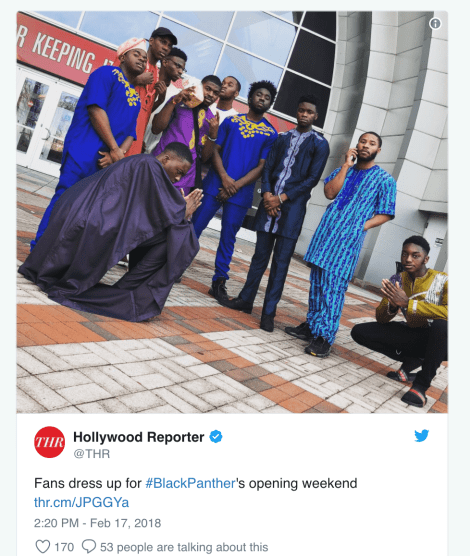 Images of people dressing up to see the movie and dancing and singing afterwards went viral. People raised funds to ensure as many black children as possible could see it. On the African continent viewers celebrated the fictitious African nation of Wakanda, and its depiction as a wealthy and influential superpower. The #BlackPanther hashtag has been used more than five million times, and is still growing, on social media.