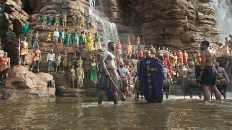 Black Panther looks over Wakanda. Production designer Hannah Beachler was responsible for devising the look of Black Panther, from the waterfall amphitheaters of Wakanda to its high-tech laboratories and aircraft.